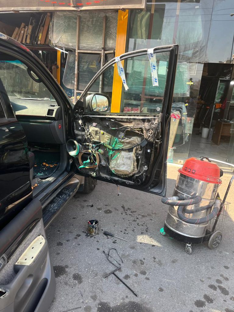 - خارجسازی شیشه معیوب: آزادکردن شیشه از اتصالات بالابر و خارجکردن آن با احتیاط از بالای درب، همراه با پاکسازی کامل خرده شیشهها.