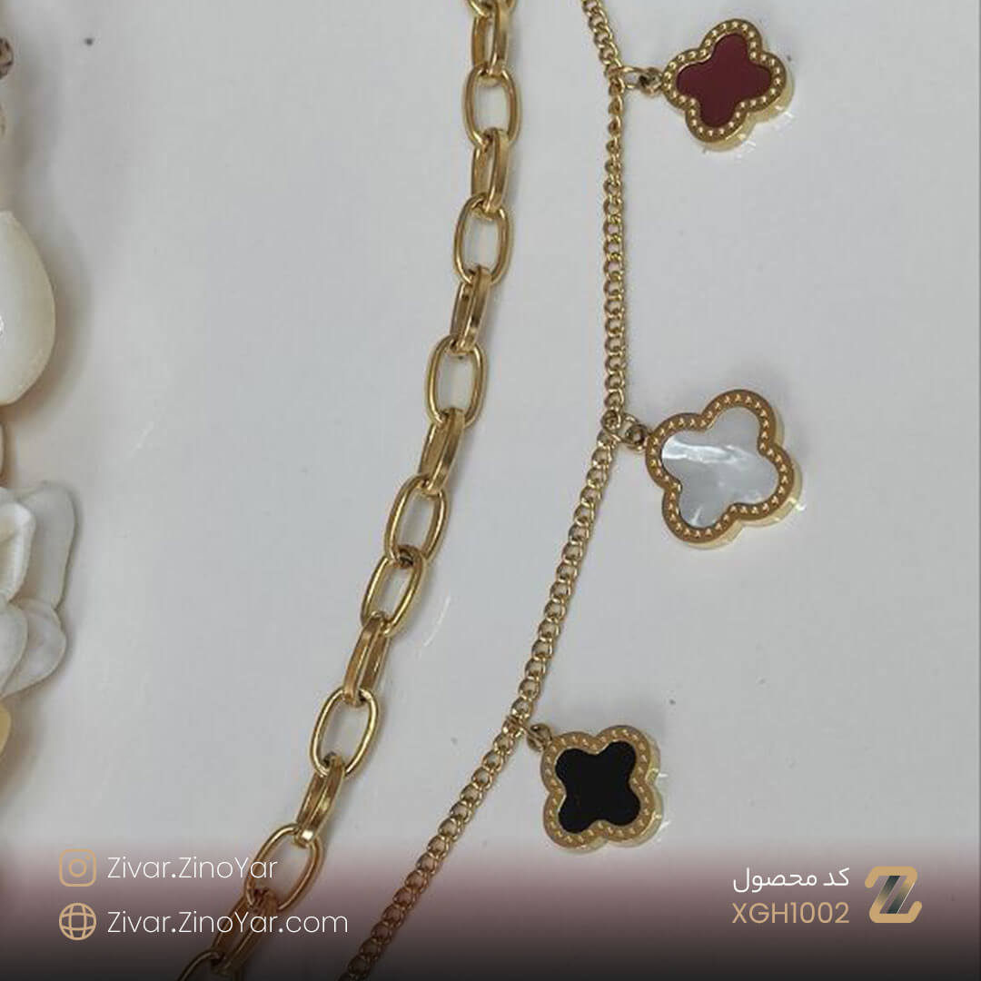 دستبند ونکلیف سه رنگ طلایی استیل برند ژوپینگ – کد XGH1002