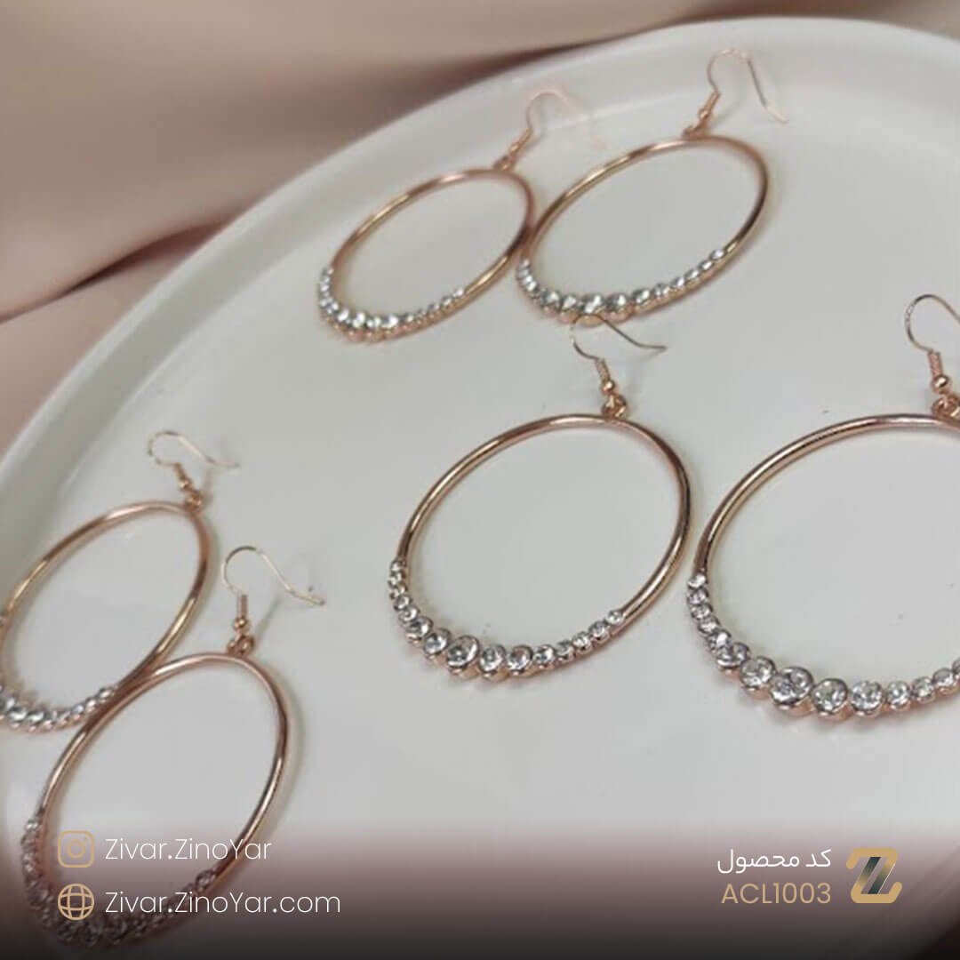 گوشواره یکی از عضو های جدایی ناپذیر در استایل بانوان محسوب می شود. قطعه ای که از جنس های متنوعی مانند طلا ، استیل ، نقره و ….. ساخته میشود و با توجه به جنس آن قیمت های گوناگونی دارد. گوشواره حلقه ای نگین دار یک محصول جذاب و شیک که با استفاده از آبکاری طلا و رنگ خیره کننده ای که دارد نظر همگان را به خود جلب میکند.