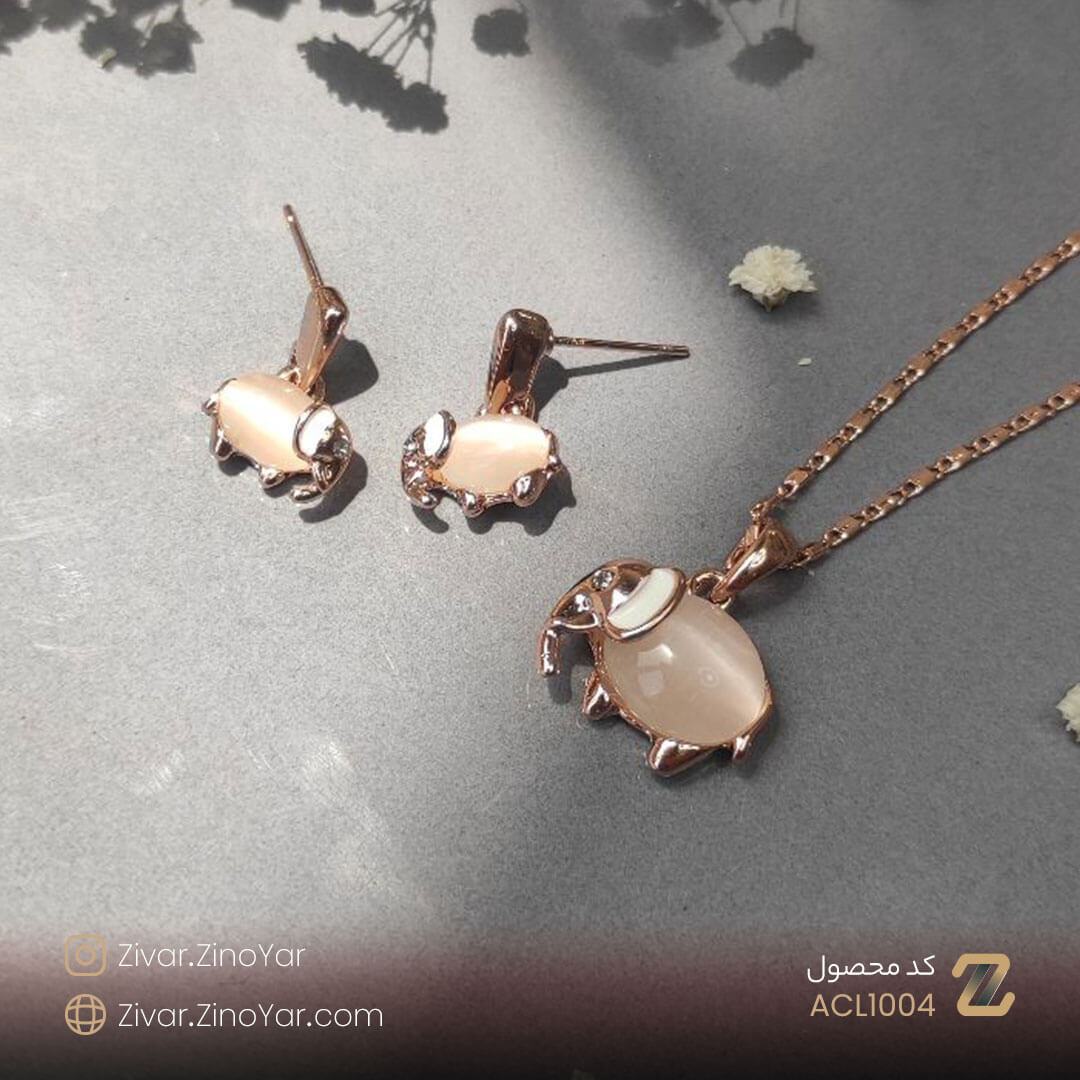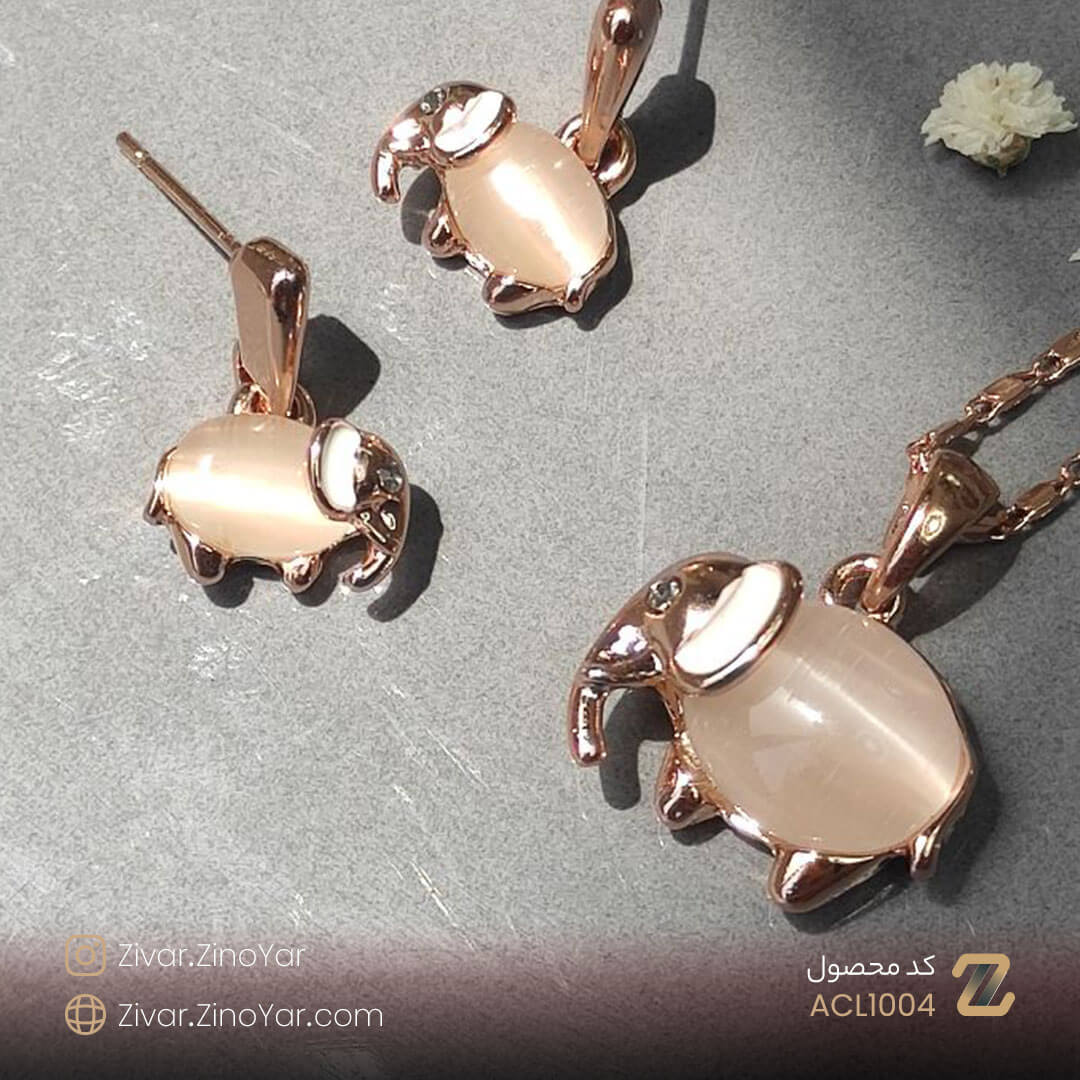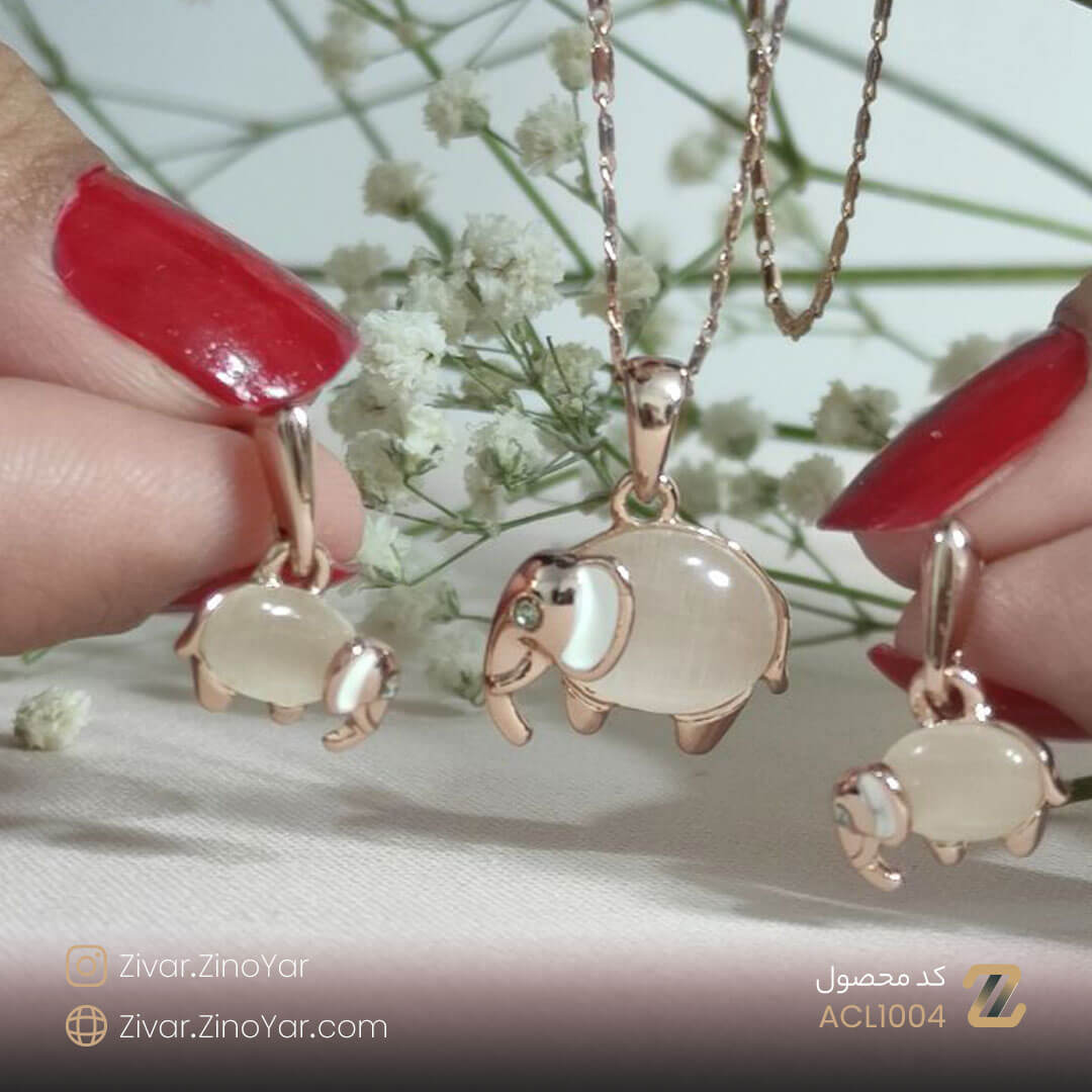 این محصول مناسب افرادی است که به حیوانات به خصوص فیل ها علاقه دارند و یا به اصلاح آنها را کیوت میدانند. این نیم ست جذاب شامل یک زنجیر ، یک جفت گوشواره با طرح فیل و یک آویز گردنبند با طرح فیل میباشد. نوع قفل این گوشواره ها میخی یا پین بوده و از قفل های محکمی برخوردار هستند. آویز این نیم ست شگفتانگیز با رنگ بندی صدفی و طلایی که دارند میتواند تغییری اساسی در استایل شما ایجاد کند. از طراحی و ساختار این محصول میتوانیم به عنوان یک اثر هنری یاد کنیم.
