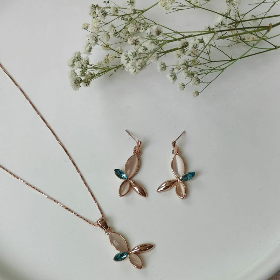 نیم ست پروانه آبی اقیانوسی یکی دیگر از نیم ست های برند کلیو و مجموعه زینویار می باشد. برند کلیو یک برند با کیفیت در صنعت بدلیجات و زیورآلات است. محصولات این برنده همه وارداتی و با کیفیت بالا در مجموعه زینویار ارائه میگردد.