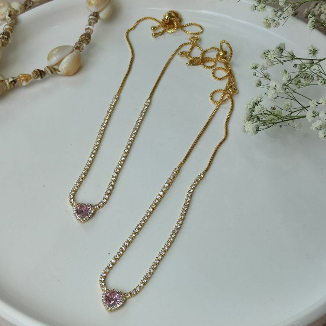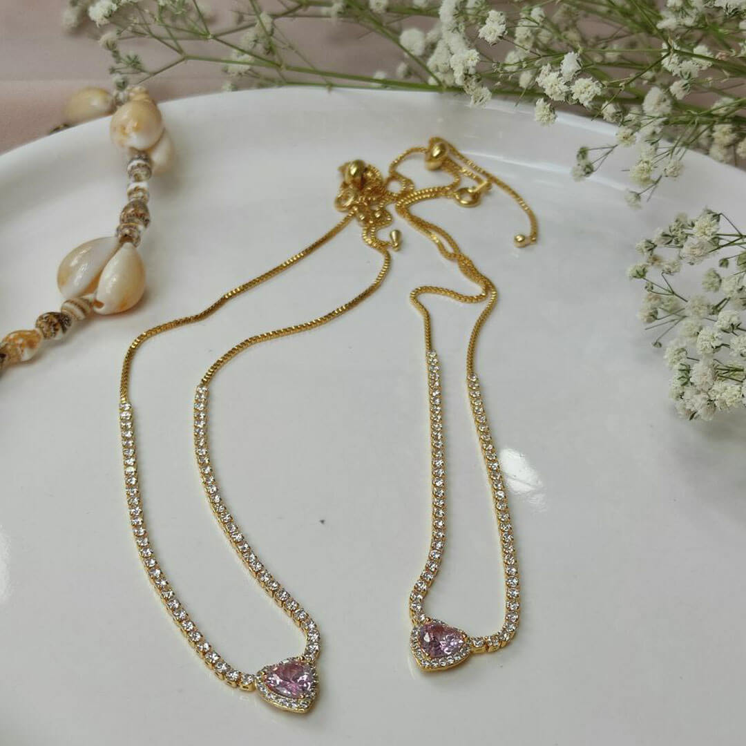این محصول از نگین کاری محکم و با کیفیتی ساخته شده است که هیچگاه نمیریزند. همانطور که در تصاویر این محصول مشاهده میکنید در بخش آویز گردنبند یک قلب صورتی رنگ بسیار بامزه و زیبا قرار دارد. اگر شما هم به دنبال یک محصول به عنوان رومانتویی هستید گردنبند قلبی هدف مورد نظر شما میباشد. چرا که این محصول داره طول 40 سانتیمتر است و این طول به نسبت سایر گردنبندها مناسبتر می باشد. البته لازم به ذکر است که بدانید این گردنبند قابلیت افزایش سایز تا 45 سانتیمتر هم دارد. نوع قفل این محصول خرچنگی بوده که یکی از پرکاربردترین قفل های موجود در بدلیجات محسوب میشود.