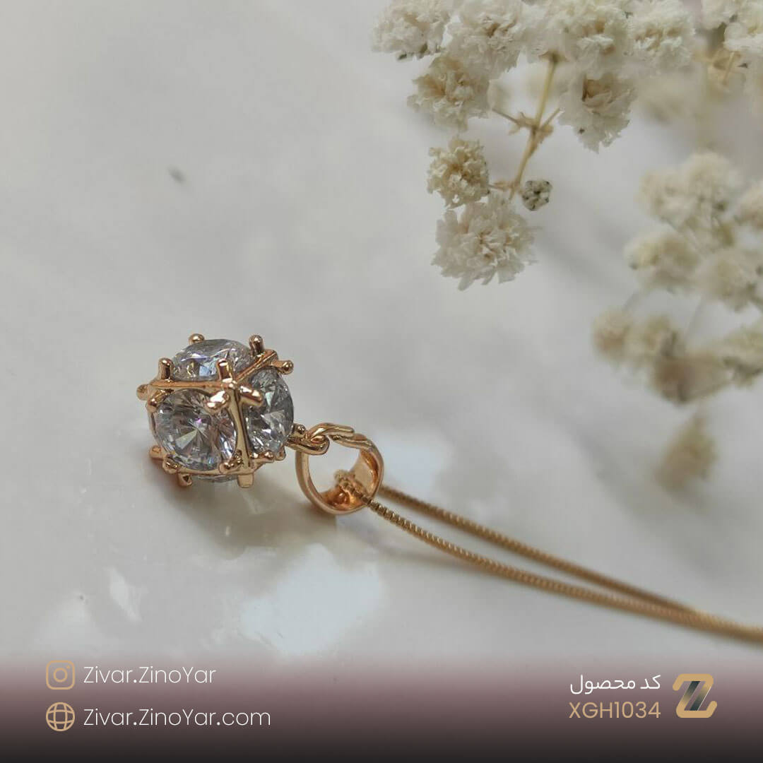 همونطور که گفته شد در این بخش به تحلیل این آویز جذاب میپردازیم. این پلاک شیک از برند ژوپینگ Xuping میباشد که برخلاف طراحی ساده خود ظرافت بالایی دارد. این محصول به مانند یک الماس درخشان که در بین حلقههای در هم پیوسته طلایی گرفتار شده است میباشد. این مثال میتواند به خوبی زیبایی و دقت کار بر روی این محصول را نشان دهد. بد نیست یک مثال جالبتر هم برای شما بگوییم. آیا تا به حال به ساختار گوله های برف دقت کردهاید؟ حلقههای طلایی پیچیده شده در دور این آویز ظاهری همانند گوله های برف را دارد. حال فرض کنید شما با خریدن آویز مکعب نگینی صاحب یک الماس زیبا که دور آن برفهای طلایی وجود دارد شدهاید. این مثال میتواند یک حس رویایی و خاص را به شما ارائه دهد و این دقیقاً همان چیزی است که در دل این محصول نهفته شده است.