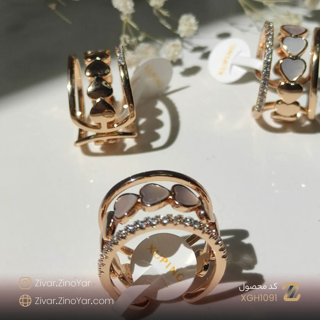 لقب زیباترین محصول مجموعه زینویار به انگشتر قلبی تعلق دارد. یک محصول شیک و خاص که مناسب تمام بانوان و دختران می باشد. محصولی زیبا از برند ژوپینگ Xuping که دارای نگین کاری و درخشندگی بسیار جذابی است. اگر شما هم جز افرادی هستید که میخواهید محصولات مختلف را با هم ست کنید میتوانید این انگشتر زیبا را با انواع دستبند و گردنبند ست کنید.